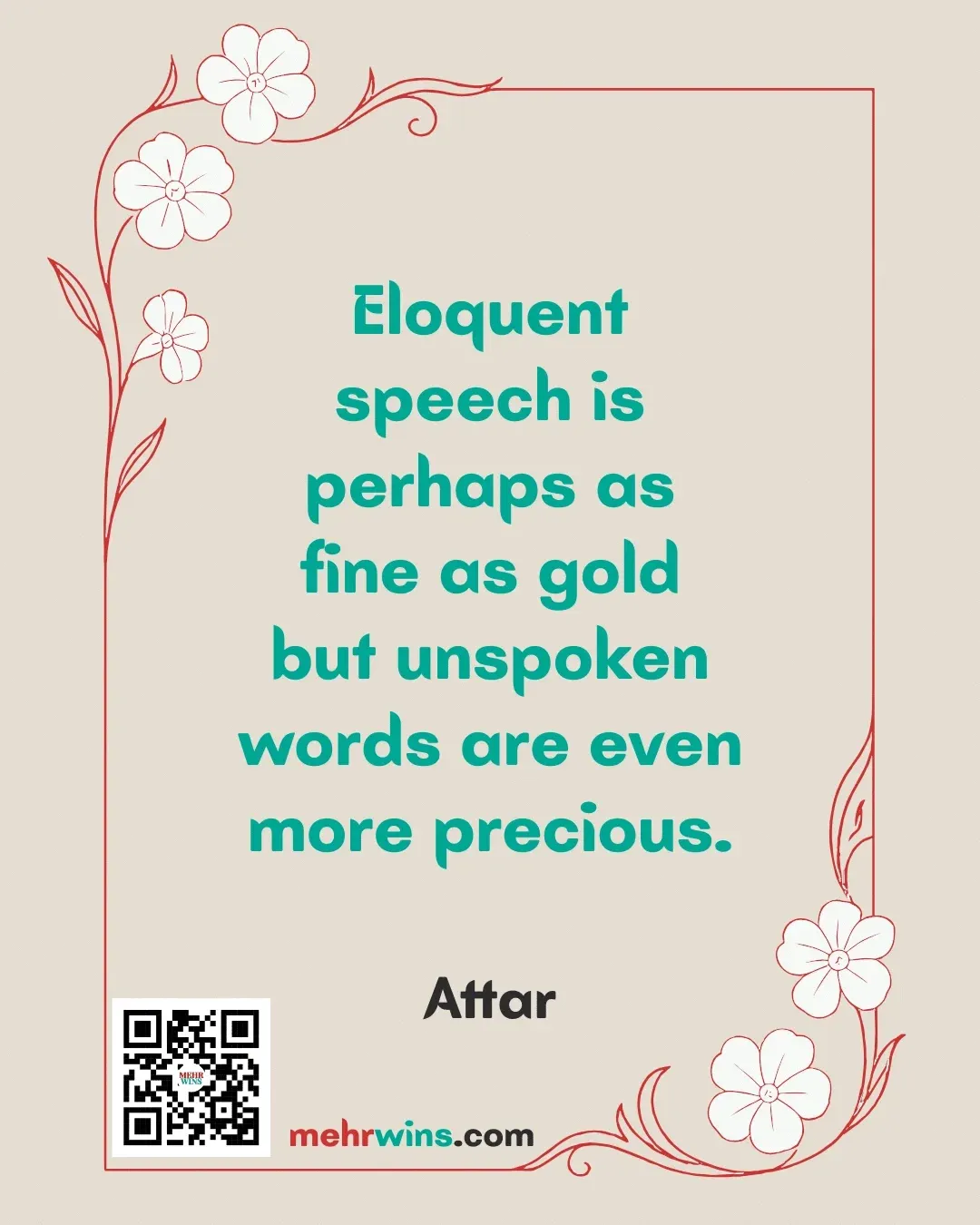 Read more: Attar: Eloquent SpeechQuote: “Eloquent speech is perhaps as fine as gold but unspoken words are even more precious.” – Attar