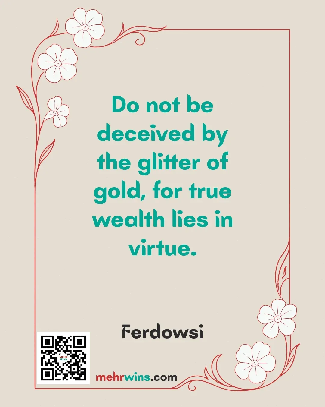 Read more: Ferdowsi: Do Not Be DeceivedQuote: “Do not be deceived by the glitter of gold, for true wealth lies in virtue.” – Ferdowsi