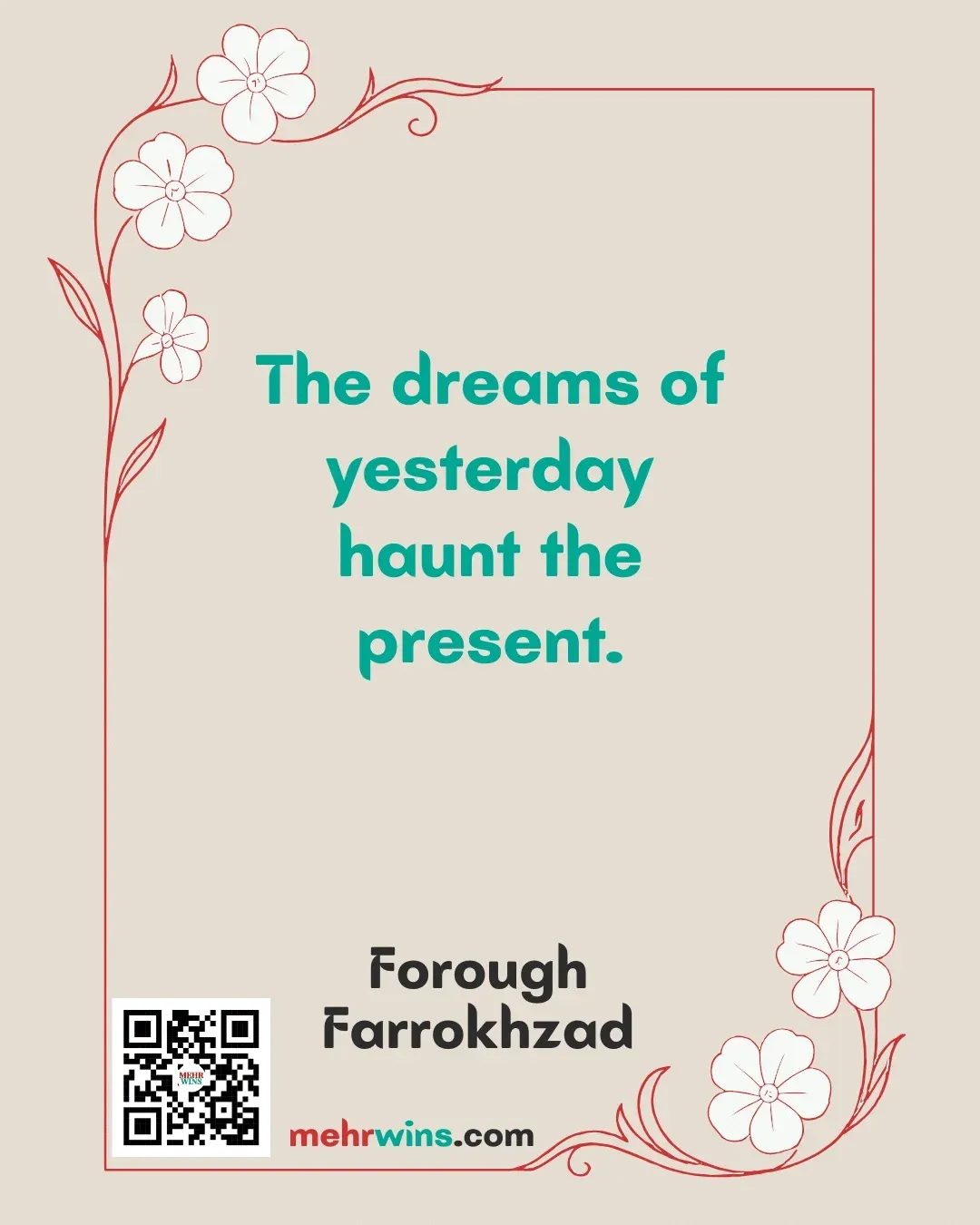 Read more: Farrokhzad: The DreamsQuote: “The dreams of yesterday haunt the present.” – Forough Farrokhzad