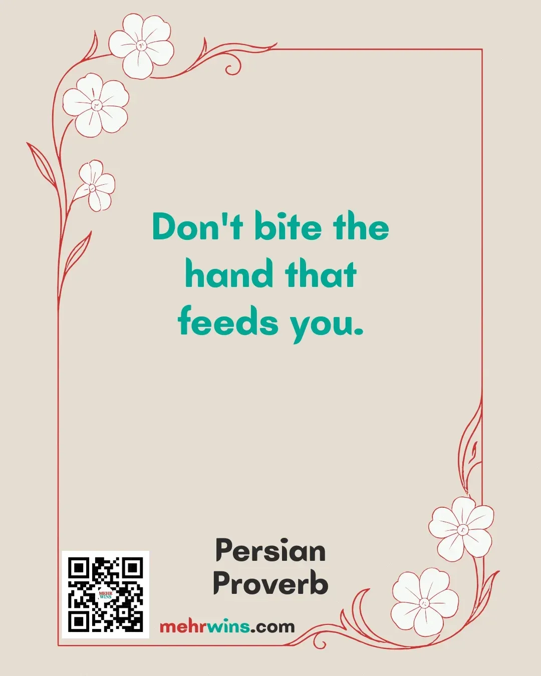 Read more: Proverb: Don’t BiteProverb: “Don’t bite the hand that feeds you.” – Persian Proverb