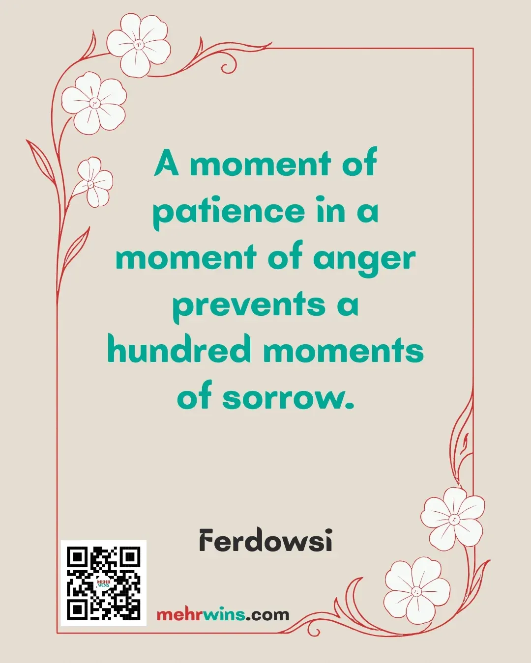 Read more: Ferdowsi: A MomentQuote: “A moment of patience in a moment of anger prevents a hundred moments of sorrow.” – Ferdowsi