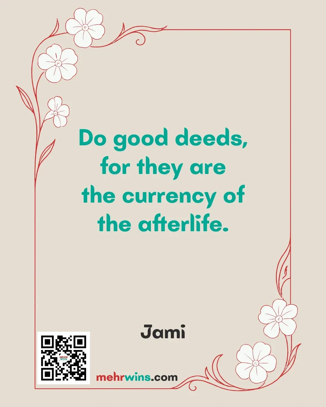 Read more: Jami: Do Good DeedsQuote: “Do good deeds, for they are the currency of the afterlife.” – Jami