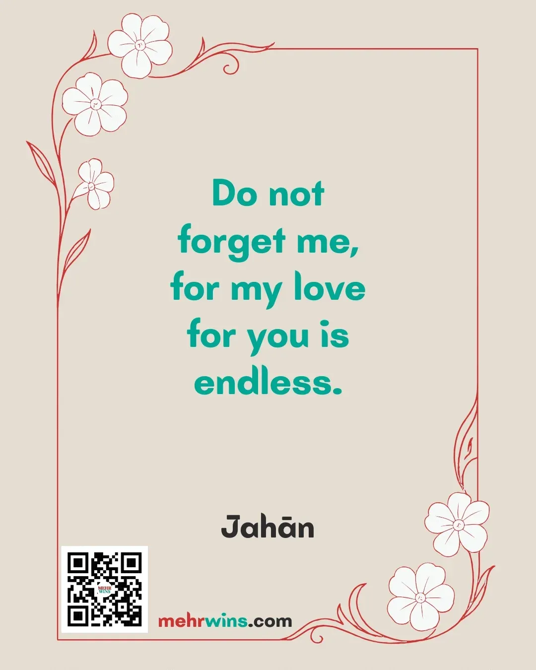 Read more: Jahan: Do Not ForgetQuote: “Do not forget me, for my love for you is endless.” – Jahān