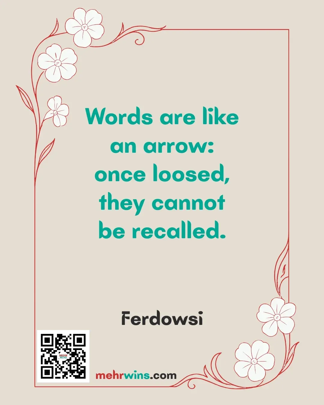 Read more: Ferdowsi: Words Are LikeQuote: “Words are like an arrow: once loosed, they cannot be recalled.” – Ferdowsi