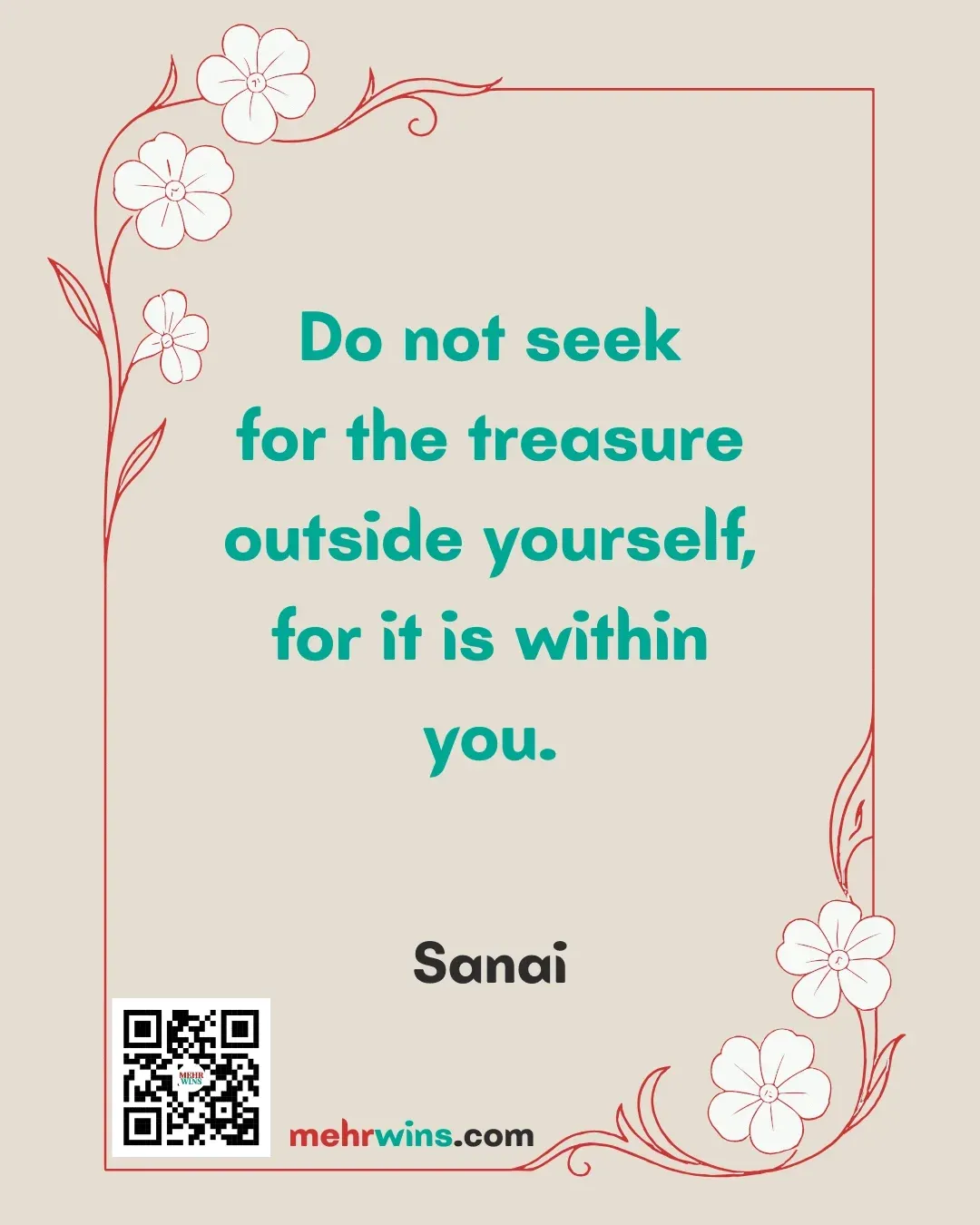 Read more: Sanai: Do Not SeekQuote: “Do not seek for the treasure outside yourself, for it is within you.” – Sanai