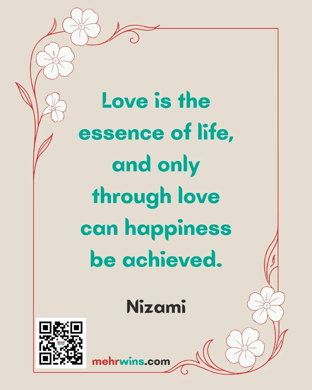 Read more: Nizami: Love isQuote: “Love is the essence of life, and only through love can happiness be achieved.” – Nizami