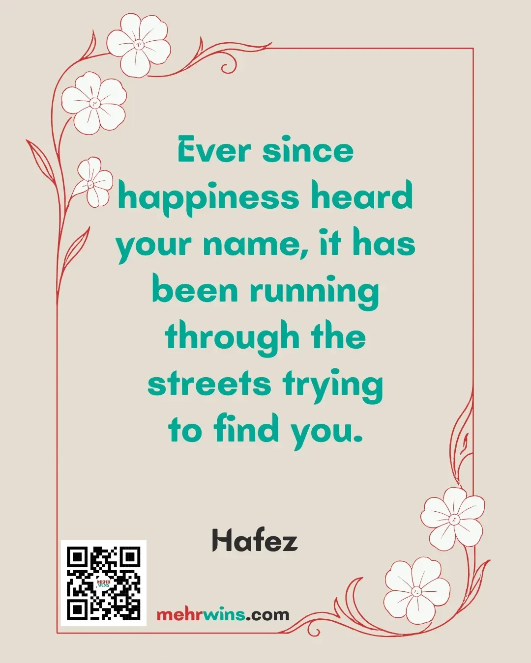 Read more: Hafez: Ever SinceQuote: “Ever since happiness heard your name, it has been running through the streets trying to find you.” – Hafez