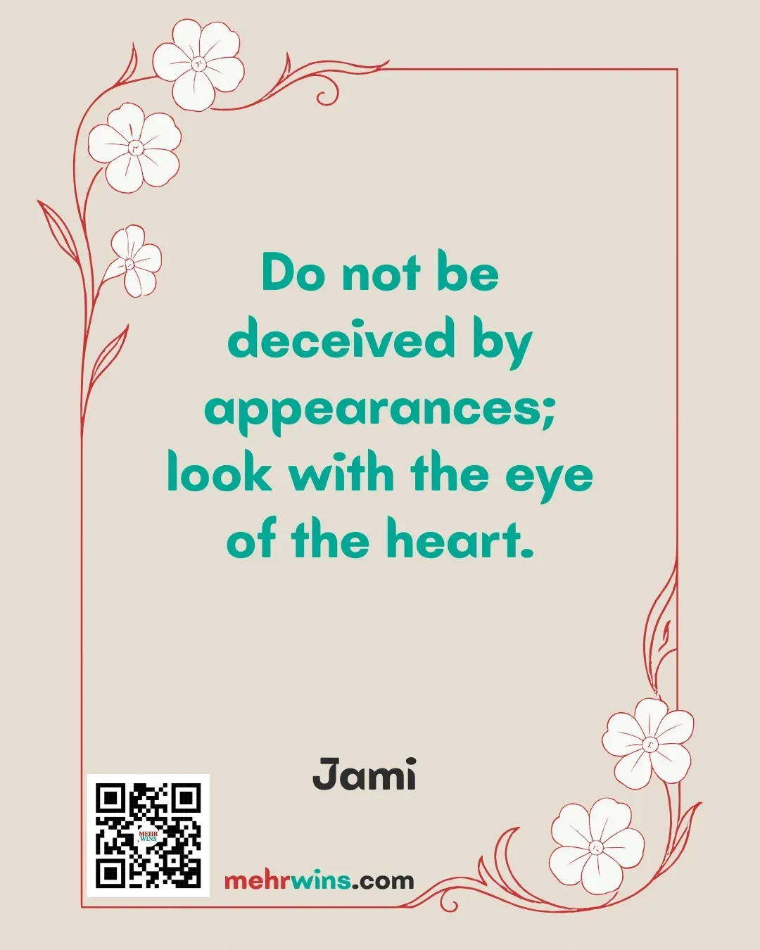 Read more: Jami: Do Not Be DeceivedQuote: “Do not be deceived by appearances; look with the eye of the heart.” – Jami