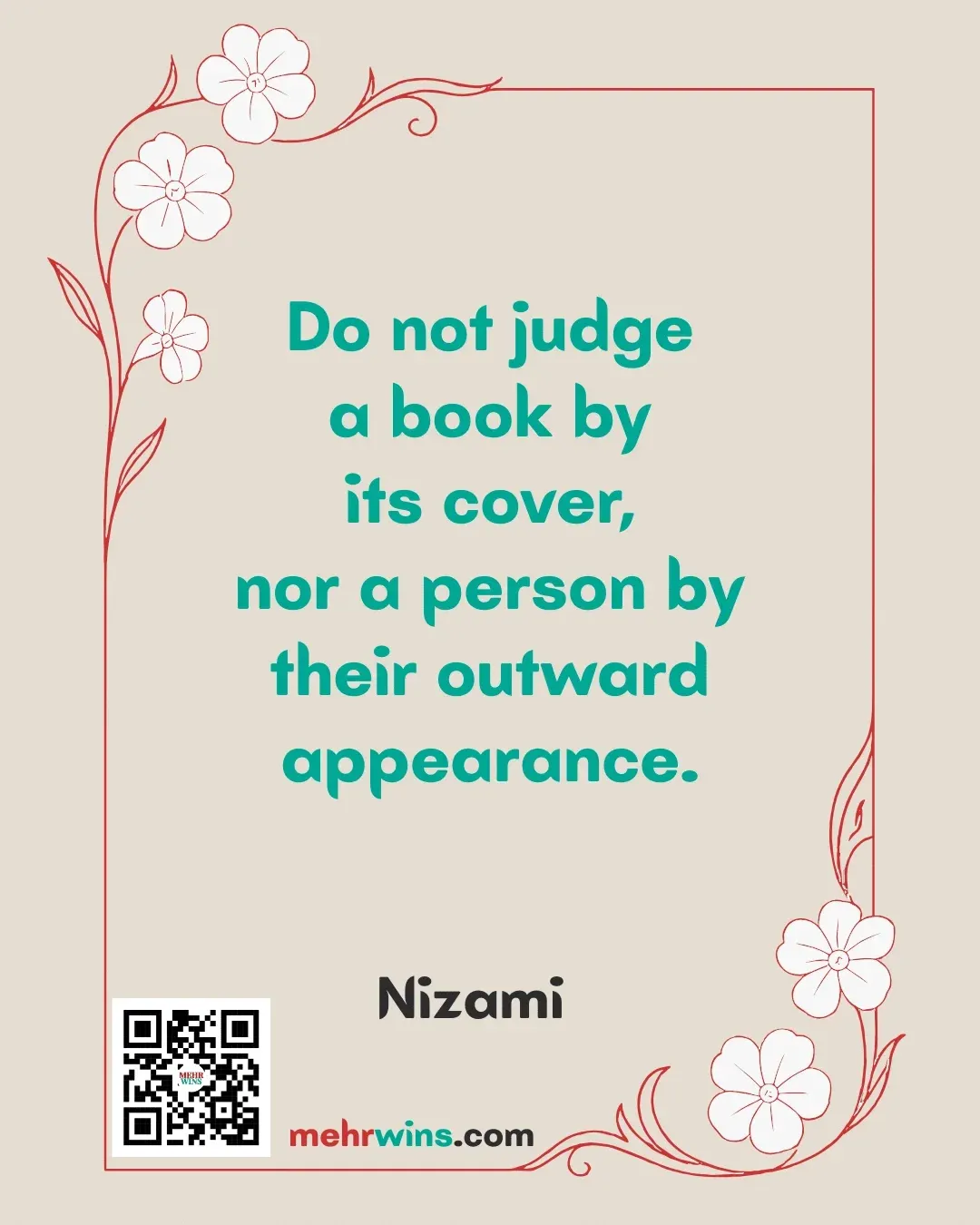 Read more: Nizami: Do Not JudgeQuote: “Do not judge a book by its cover, nor a person by their outward appearance.” – Nizami